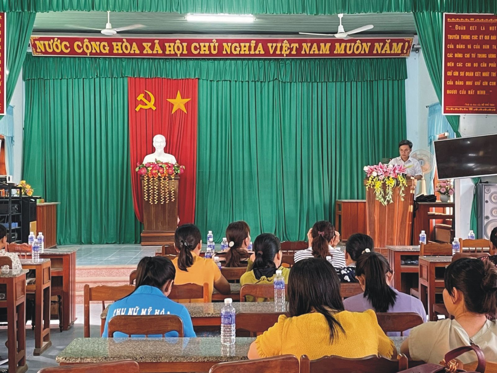 Tham gia buổi trợ giúp pháp lý có đại diện Hội Liên hiệp Phụ nữ xã và hơn 60 lượt hội viên tham dự. Tại đây, báo cáo viên của Trung tâm Trợ giúp pháp lý đã triển khai một số quy định của Luật Phòng, chống bạo lực gia đình năm 2022 và Luật Hôn nhân và gia đình năm 2014.