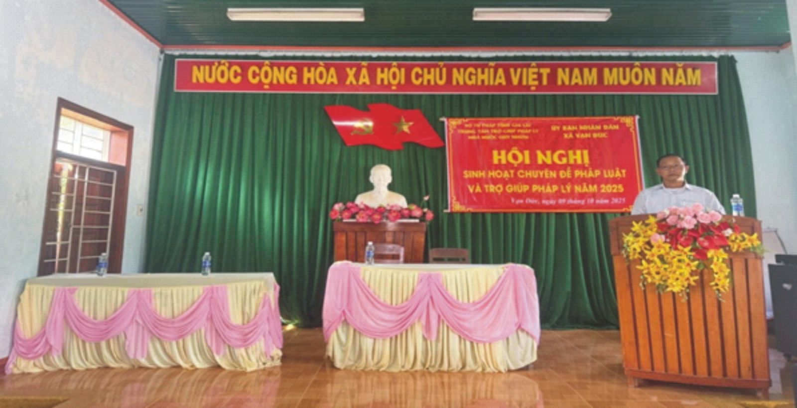 Tăng cường hiểu biết pháp luật cho người dân nông thôn sáng ngày 09 tháng 10 năm 2025, tại Nhà văn hóa thôn 1 xã Vạn Đức, Trung tâm Trợ giúp pháp lý Nhà nước Quy Nhơn và (Chi nhánh số 5) phối hợp với Ủy ban nhân dân xã Vạn Đức tổ chức đợt sinh hoạt chuyên đề pháp luật và trợ giúp pháp lý năm 2025.