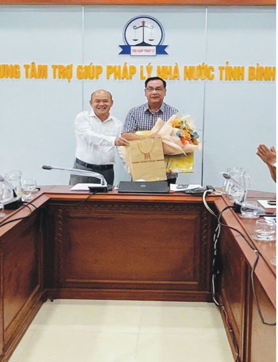 Tham dự buổi lễ có các đồng chí: Phạm Dân – Phó Giám đốc Sở Tư pháp tỉnh Bình Định; Lê Thành Trung – Giám đốc Trung tâm Trợ giúp pháp lý (TGPL) Nhà nước tỉnh Bình Định và toàn thể cán bộ, viên chức của Trung tâm TGPL.