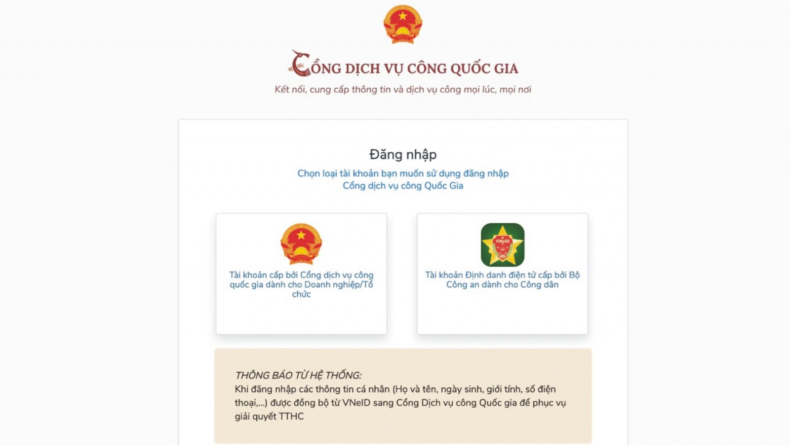 Để thực hiện việc đổi bằng lái xe B1, B2 sang C1 trên Cổng dịch vụ công trực tuyến, đầu tiên người dân cần đăng ký tài khoản trên Cổng dịch vụ công. Có thể đăng nhập thông qua tài khoản định danh điện tử VneID cấp bởi Bộ Công an dành cho công dân.