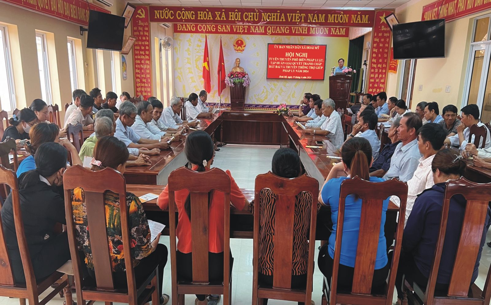 Thực hiện kế hoạch số 18/KH-TGPL ngày 22/12/2023 của Trung tâm trợ giúp pháp lý Nhà nước tỉnh Bình về “Kế hoạch công tác Trợ giúp pháp lý năm 2024”. Vào ngày 19 tháng 06 năm 2024, Trung tâm Trợ giúp pháp lý nhà nước tỉnh phối hợp Phòng Tư pháp thị xã Hoài Nhơn, Hội Luật gia thị xã Hoài Nhơn; Ủy ban nhân dân xã Hoài Mỹ, thị xã Hoài Nhơn, tổ chức đợt truyền thông trợ giúp pháp lý ngoài trụ sở, kết hợp với sinh hoạt chuyên đề pháp luật cho đội ngũ Quân dân chính, người được trợ giúp pháp lý, hội viên của các hội đoàn thể, nhân dân trên địa bàn xã Hoài Mỹ.