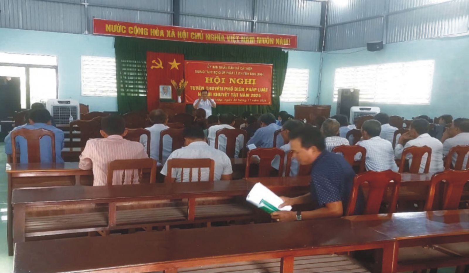 Ngày 26 tháng 11 năm 2024, Trung tâm Trợ giúp pháp lý (TGPL) nhà nước tỉnh phối hợp với UBND xã Cát Hiệp, huyện Phù Cát tổ chức Hội nghị Tuyên truyền, phổ biến giáo dục pháp luật và trợ giúp pháp lý cho các hội viên là người khuyết tật và thân nhân gia đình người khuyết tật.