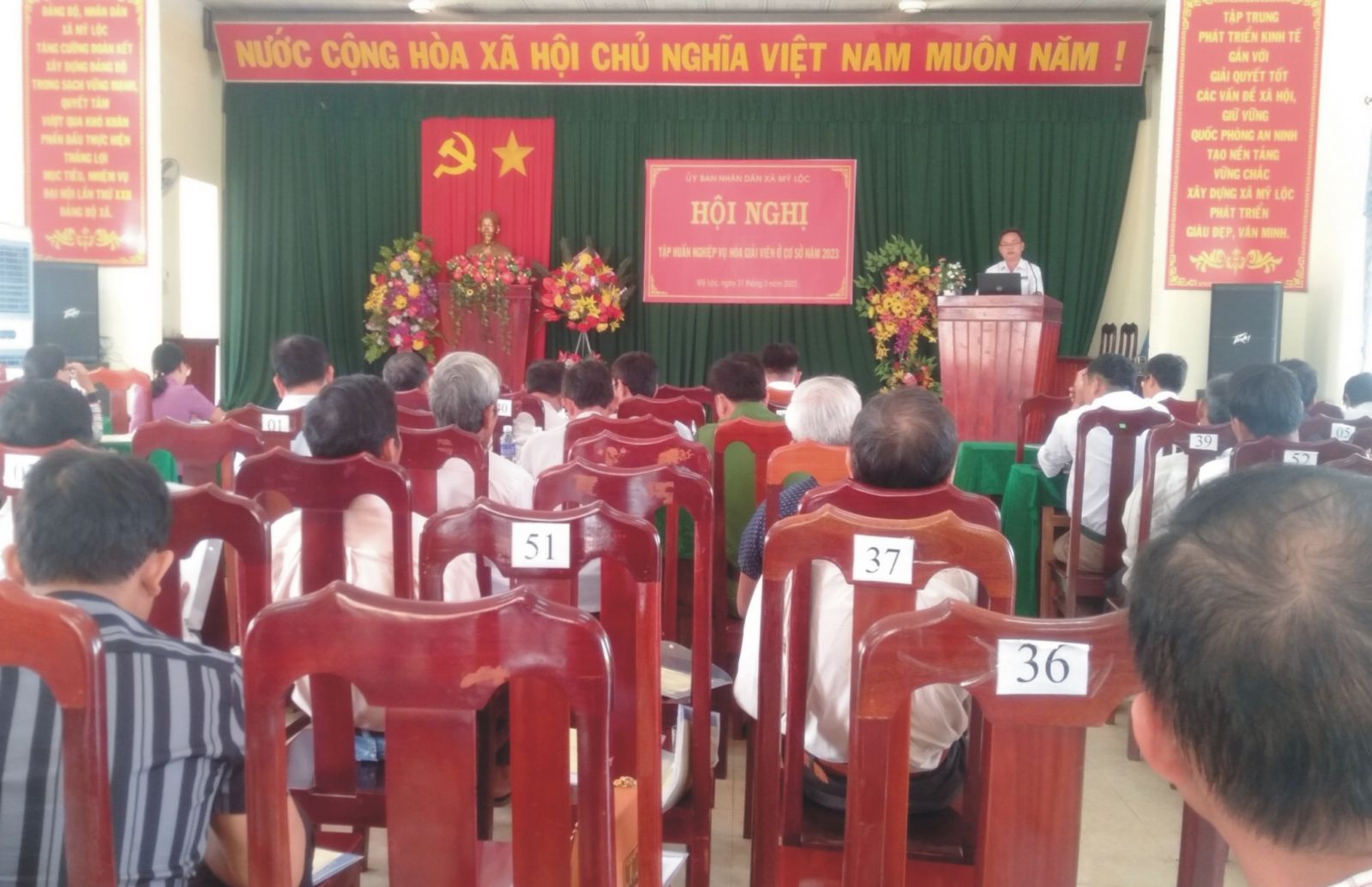 Tại buổi trợ giúp pháp lý ngoài trụ sở, về phía chính quyền địa phương có sự tham dự của ông Đặng Đình Kha – Phó Chủ tịch Uỷ ban nhân dân xã Mỹ Lộc và ông Lê Thành Trung – Giám đốc Trung tâm Trợ giúp pháp lý Nhà nước tỉnh, với sự tham hơn 70 hoà giải viên, người dân tham dự. Tại đây, báo cáo viên pháp luật của Trung tâm đã tuyên truyền, phổ biến một số nội dung chính về Luật hoà giải cơ sở năm 2014 và các văn bản hướng dẫn thi hành, Luật Trợ giúp pháp lý, Luật đất đai…cho những người tham dự có cơ hội tìm hiểu và nghiên cứu. Bên cạnh đó, báo cáo viên pháp luật cũng đã giải đáp, tháo gỡ những vấn đề thắc mắc, các tình huống về hoà giải ở cơ sở cho các hoà giải viên và cũng như bức xúc của người dân thường xuyên xảy ra trong cuộc sống hàng ngày.